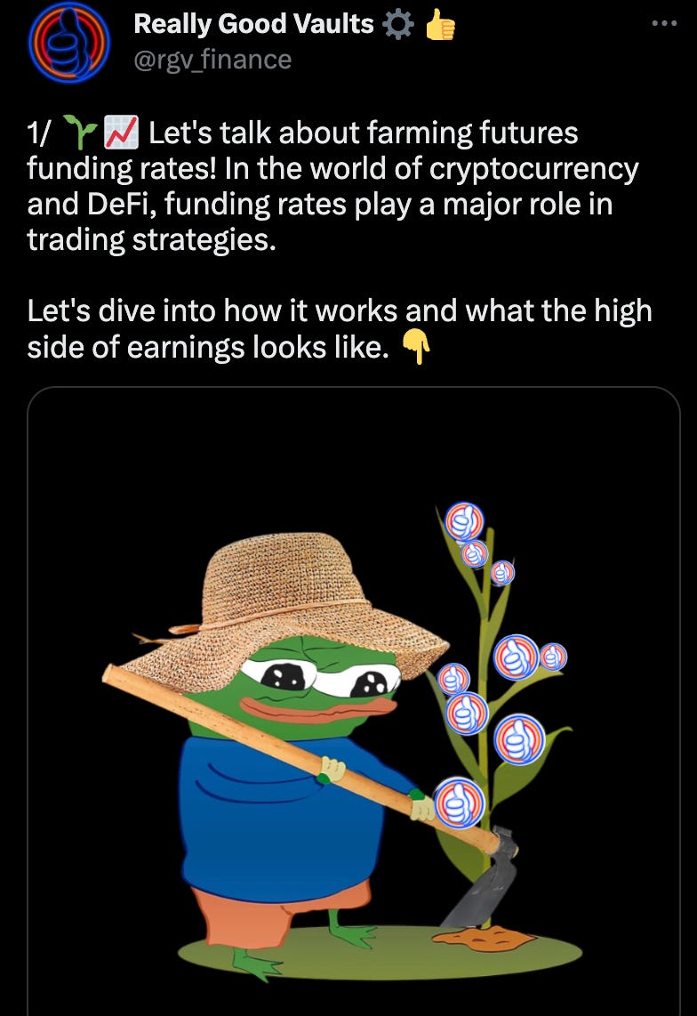Arbitrumの新興Perp DEXであるVertexの上に構築されるプロジェクト. RGVは、永久先物の特徴であるFunding Rateは平均するとロング側が年率20%程度支払っていることに着目してデルタニュートラルなVaultを作ろうとしています.