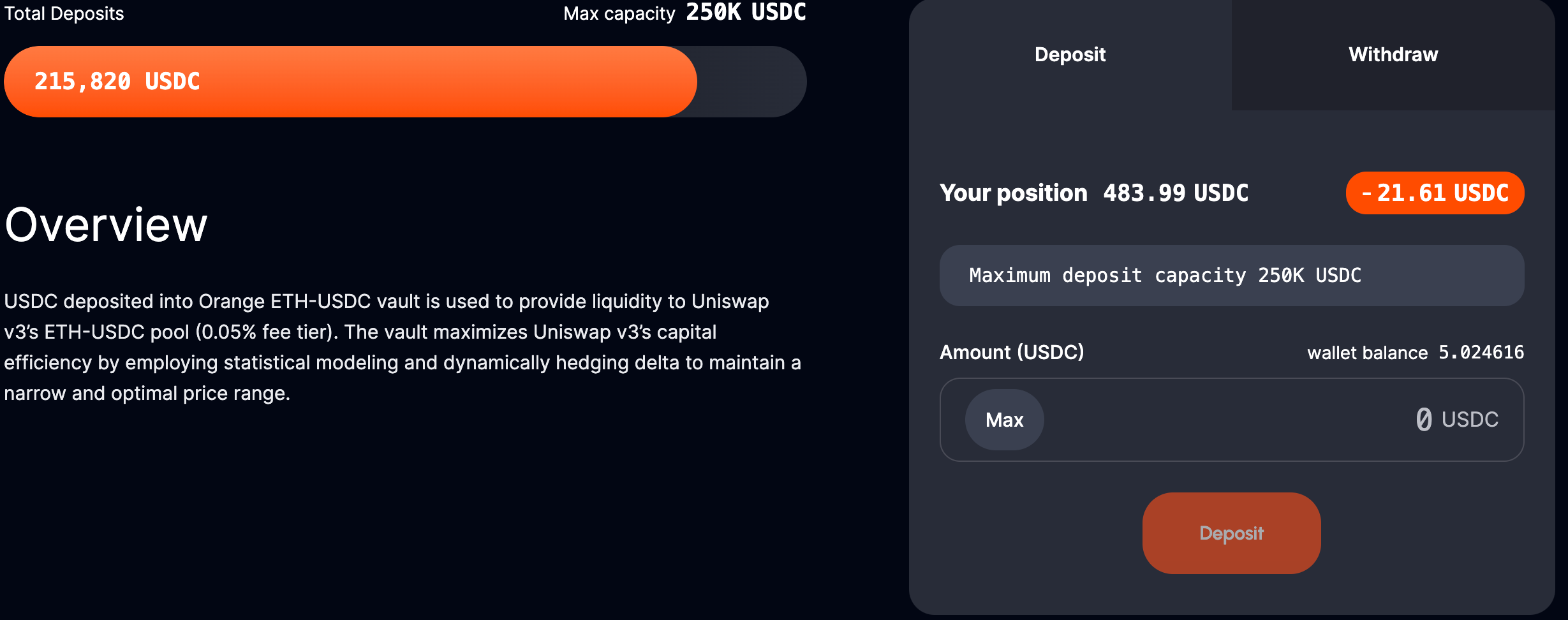 UniV3とAaveを組み合わせてデルタニュートラルなポジションを構築しながら手数料を稼ぐAlpha Vaultがすでにリリースされていますが、苦戦しているみたいです。自分も500ドルだけ入れてみましたが、最近のボラで損してます。