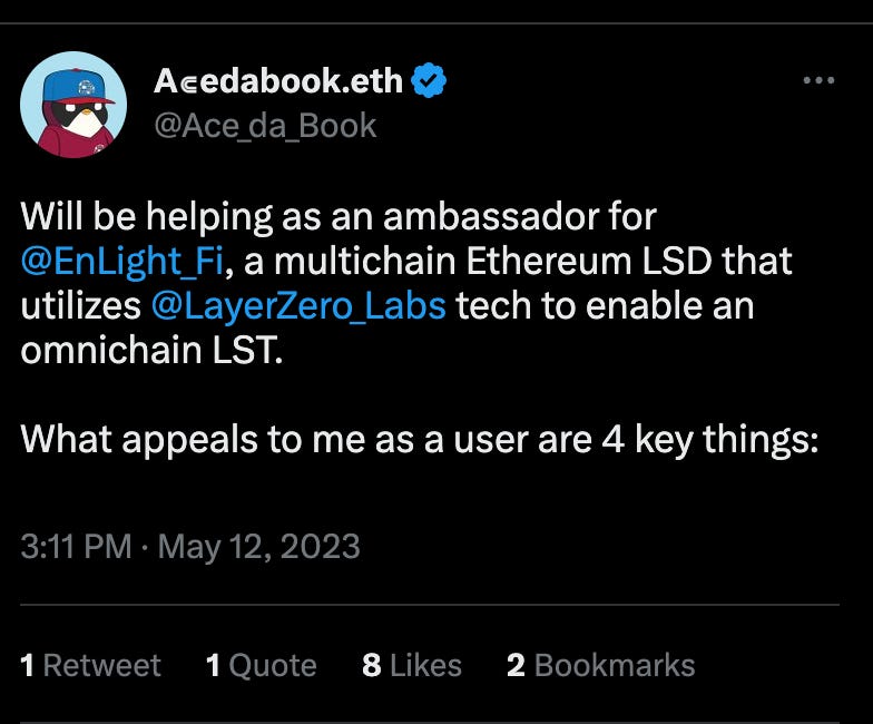 LSDをLayerZeroを用いてクロスチェーンで運用することを目指しています。預けられたETHの90%を低リスクな方法で運用し、10%をConvexやPendleなどで運用するみたいです。