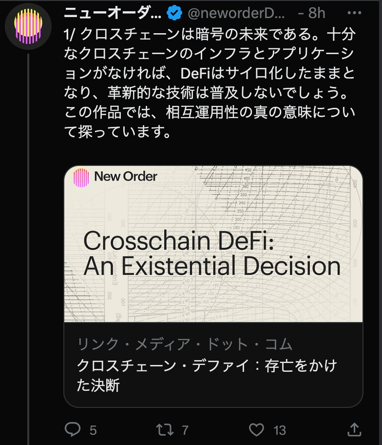 DeFiがWeb2をベースにした既存金融を置き換えるには、チェーンごとに流動性と技術が分断されている現在の状況は好ましくない。チェーンをストレスなく統合できる技術が必要。みたいな内容が書かれています。