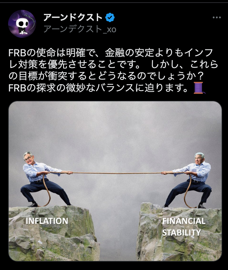 アメリカはリセッションの可能性が高まっておりFRBは難しい舵取りを強いられている。6月1日には債務上限に達すると言われており、取れる選択肢は債務上限を引き上げるのか、時間稼ぎのために一時的に上限を無視するか、何も決まらないまま6月を迎えるか。