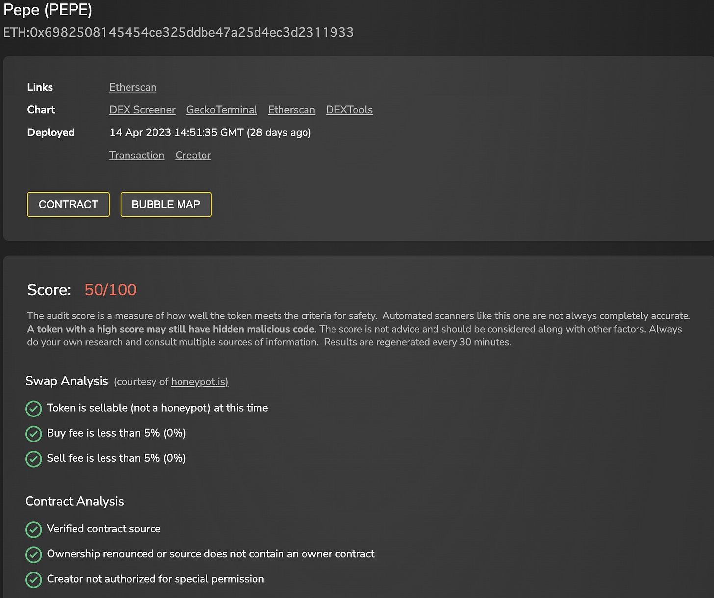 PEPEみたいなミームコインが安全かどうか瞬時に判断してくれます
