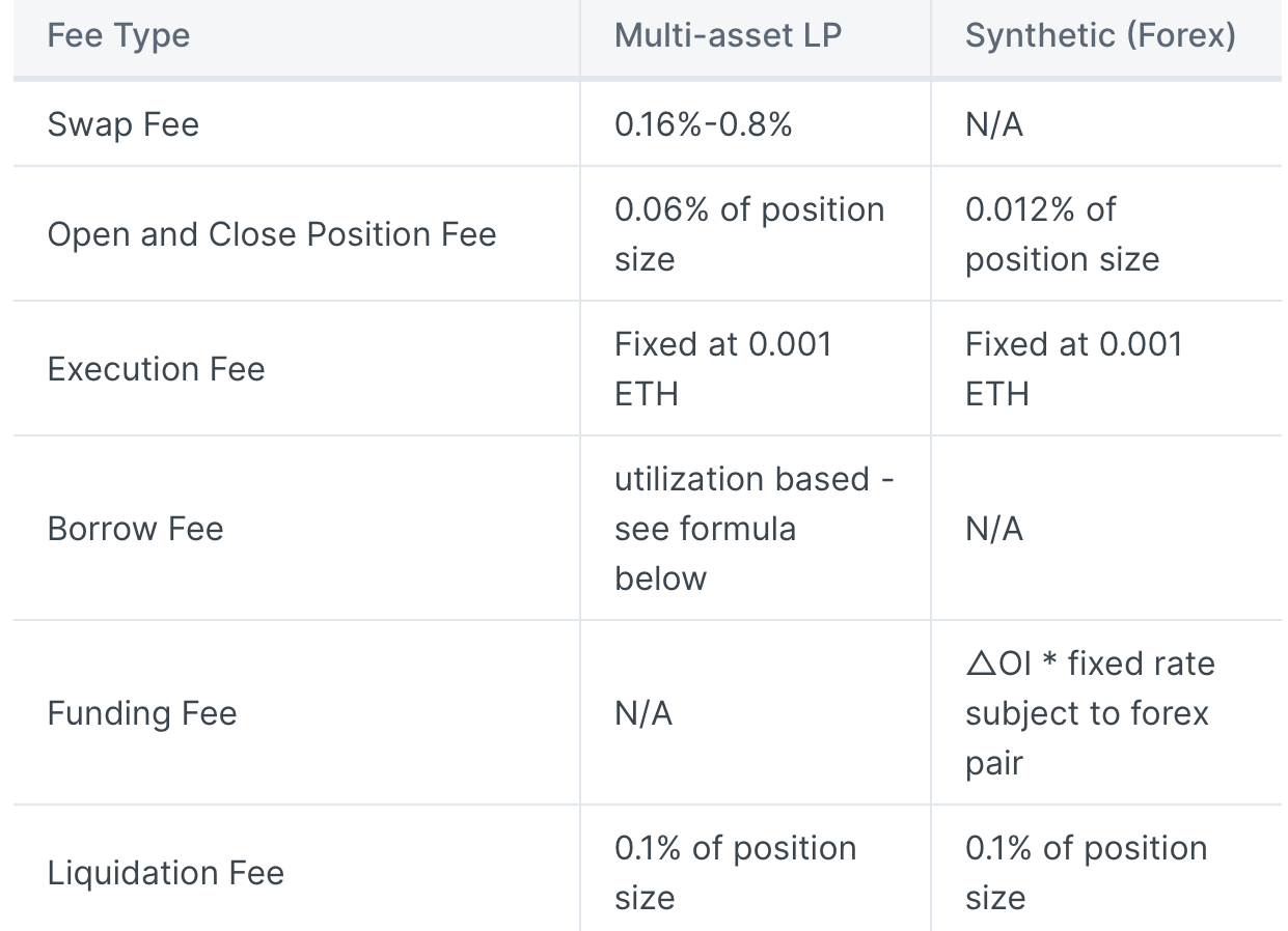 - Multi-Asset LP: GLPと同様な仕組みです。ユーザーが入金した資金は自動的にドル、BTC、ETHなどの資産に決まった割合で現物資産に交換されます。このプールを使って行われた取引から手数料を得ながら、現物資産のインデックスを保有することが可能です。