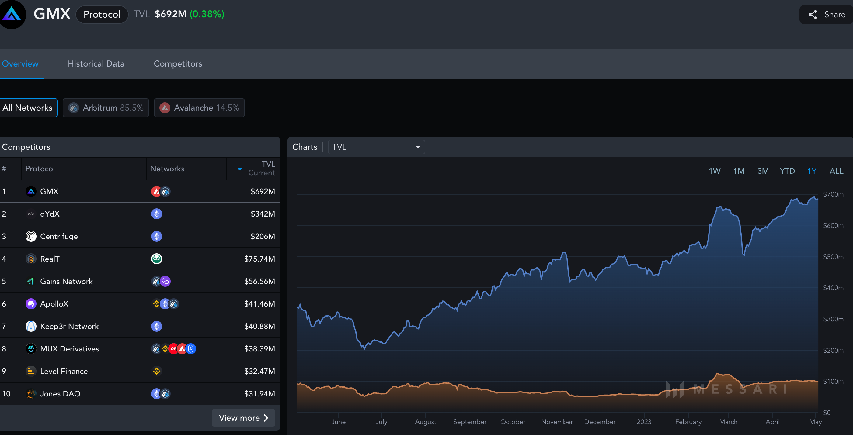 GMXは、ドルと仮想通貨がおおよそ1対1で組み合わされた擬似的なインデックスに投資するだけで、常時約20%の高い利回りを得られるGLPが大ヒットし、大きく成長しました。