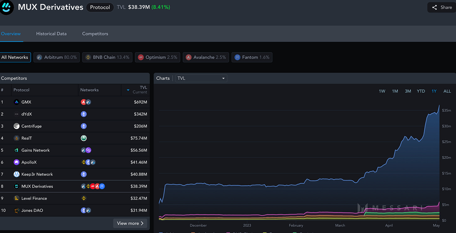 新しいところで言えば、MUX Protocolも注目されています。自身のプール以外にGLPやGainsなどをルーティングすることで、最適なルートでオーダーすることができます。またクロスチェーン取引も可能とあって、最近はTVLを伸ばしています。
